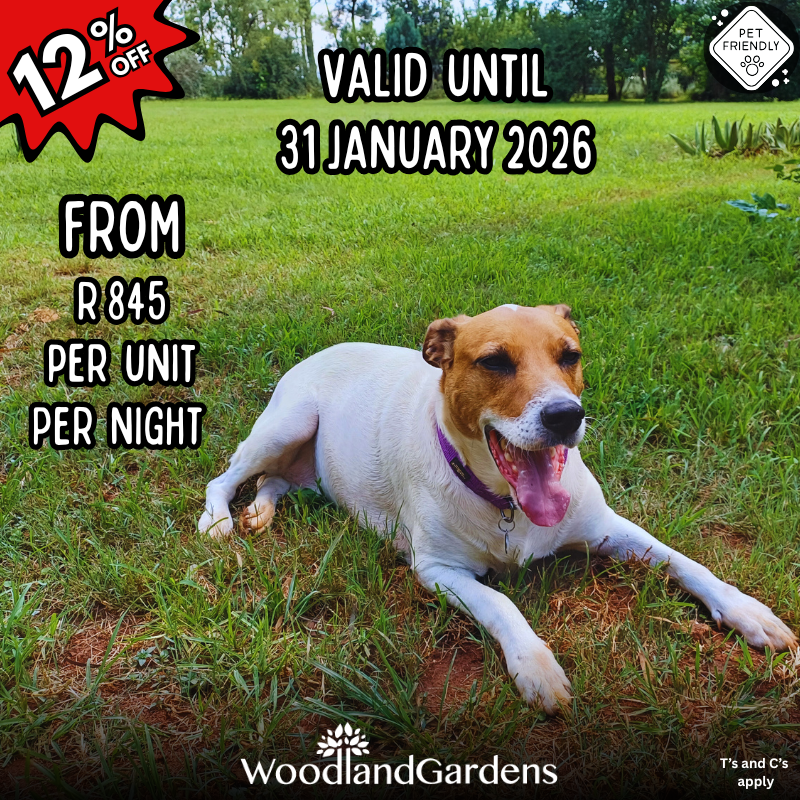 Get 12% off on available chalets, valid until 31 January 2026. 🎉 Starting price of R845 per unit per night.