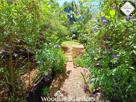 🌿 Veranda with 2 chairs and a table overlooking a private garden space, fully fenced and gated, 🔥 with built in outdoor braai and bonfire areas.