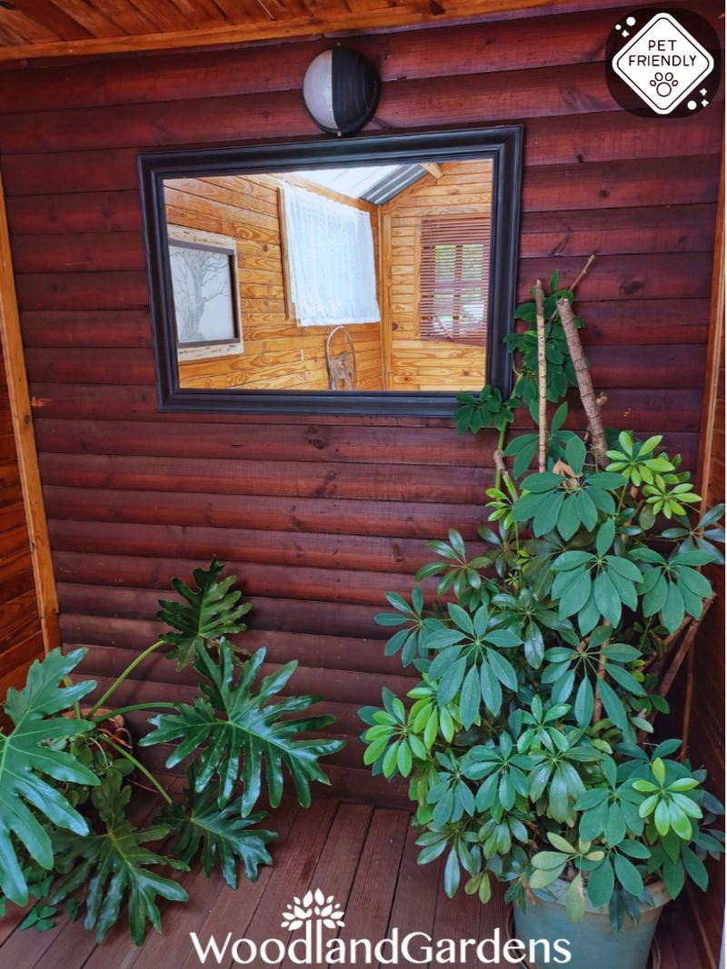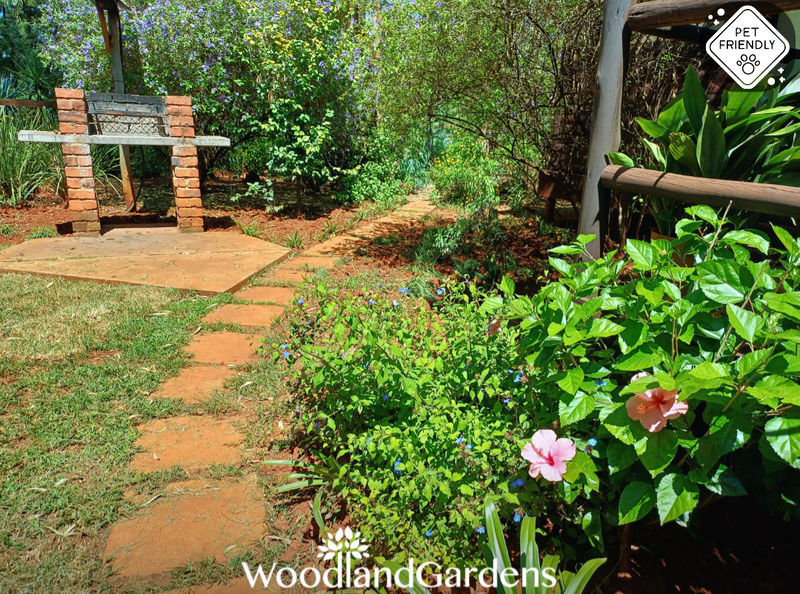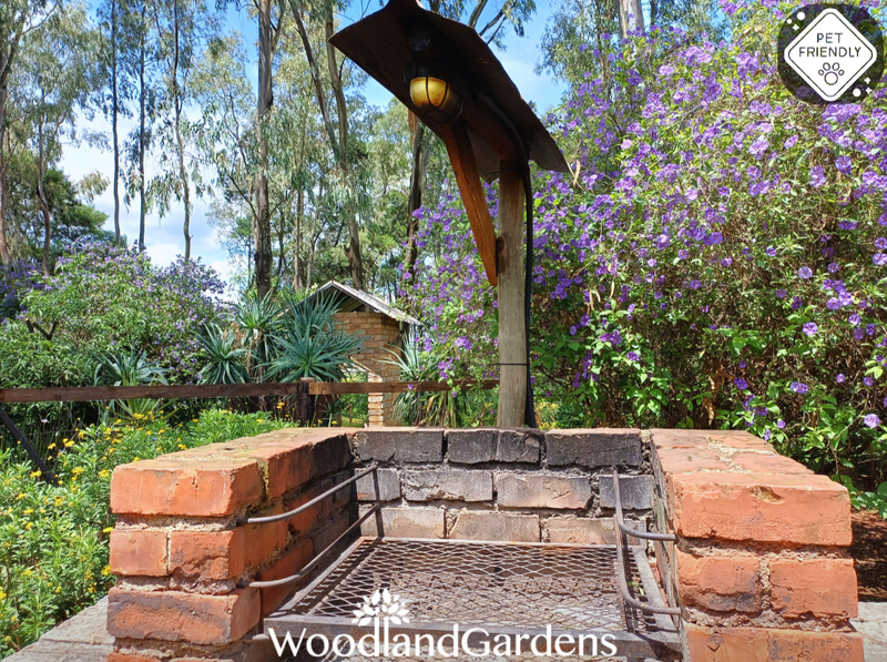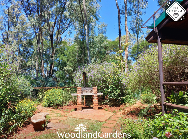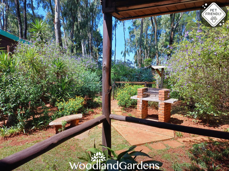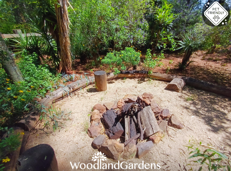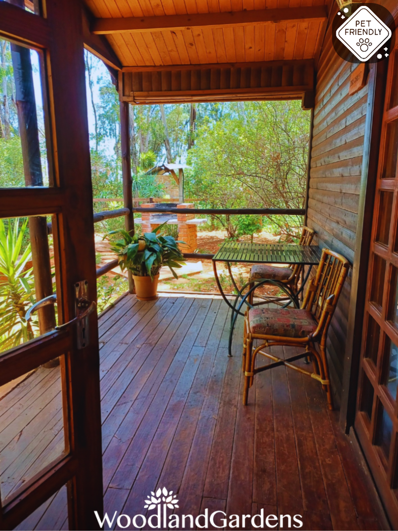 🌿 Veranda with 2 chairs and a table overlooking a private garden space, fully fenced and gated, 🔥 with built in outdoor braai and bonfire areas.