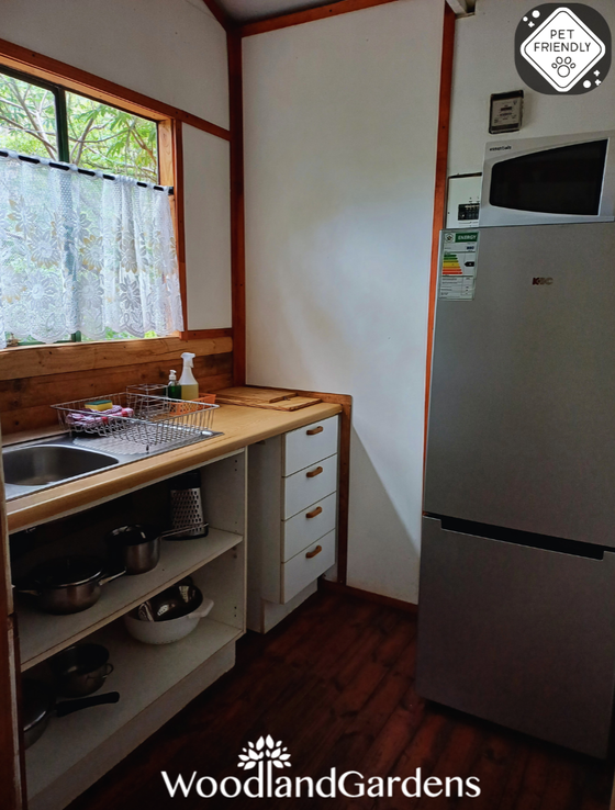 🍴 Open plan kitchen fully equipped for self-catering, including all cutlery and crockery, gas stove and oven, kettle, toaster, microwave and a fridge with a freezer.
