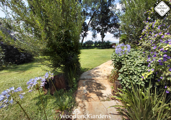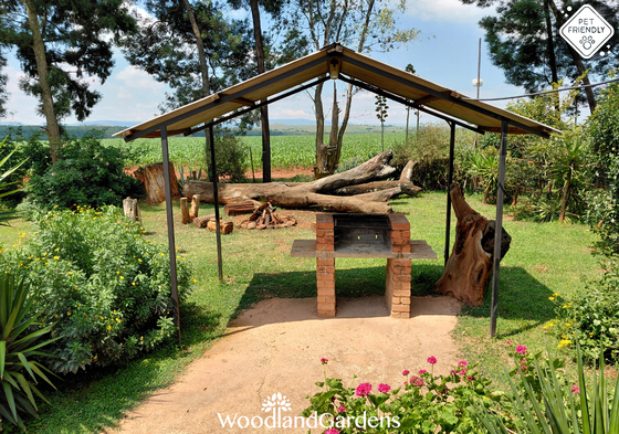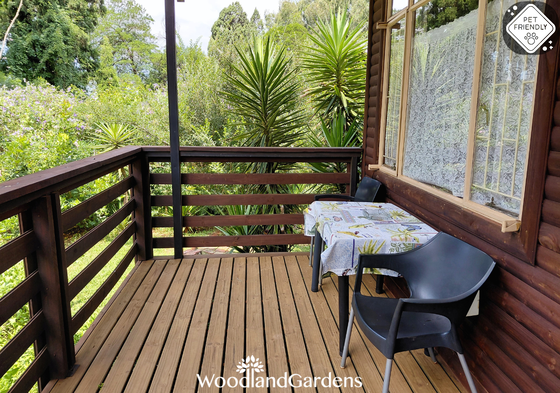 ๐ฟ Veranda with 2 chairs and a table overlooking a private garden space, fully fenced and gated, with built in outdoor ๐ฅ braai and bonfire areas.