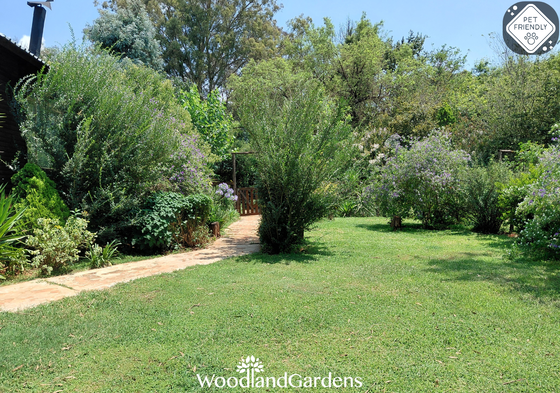 Separate bedroom (queen sized bed only) and bathroom (bath and hand-held shower). Fully equipped open plan kitchen, dining area and lounge with a fireplace, TV monitor with media ports (no DSTV) and a DVD machine. Lounge doors open onto a veranda, with tables and chairs, overlooking a privately enclosed fenced and gated garden equipped with braai and bonfire areas.