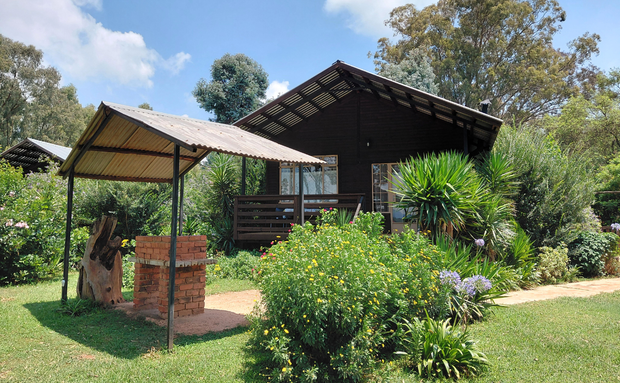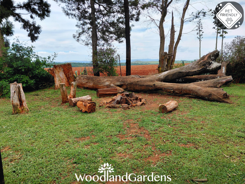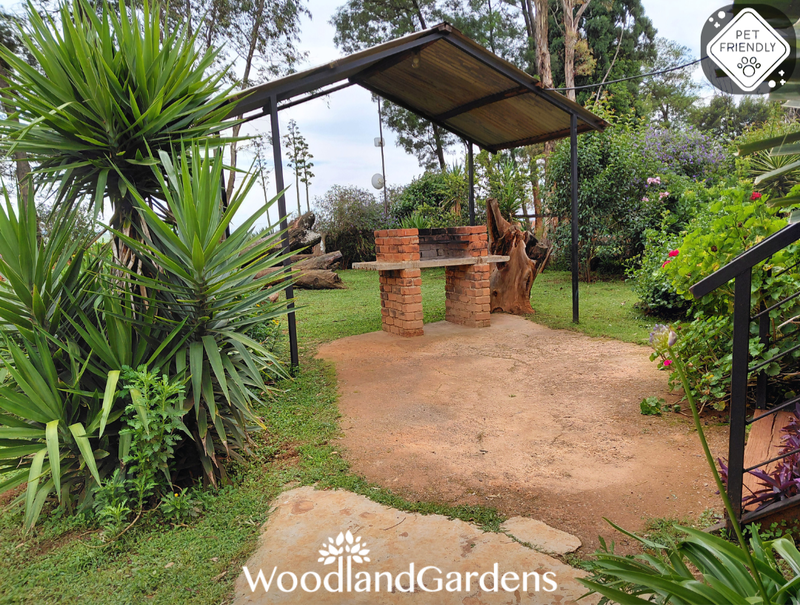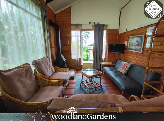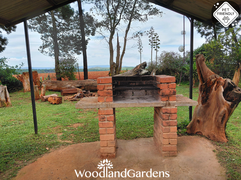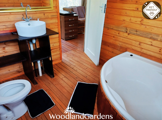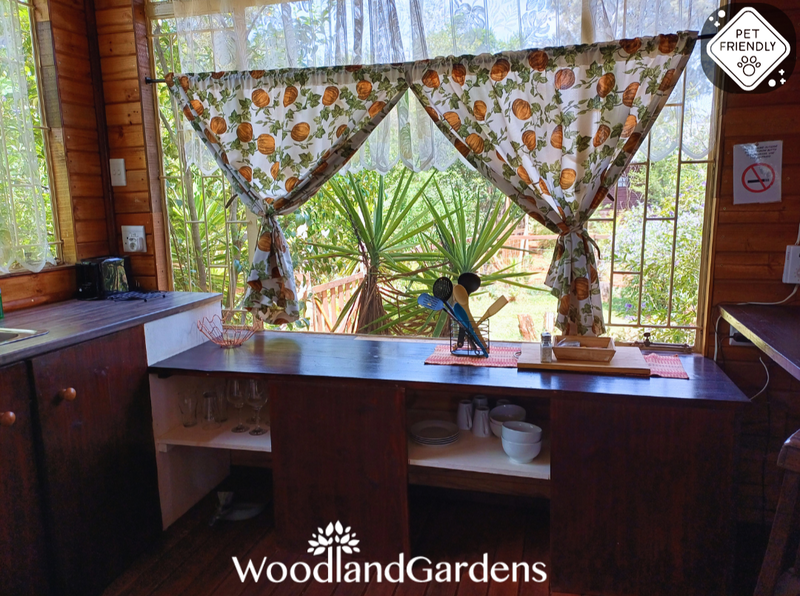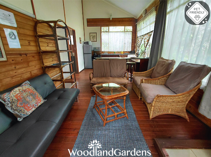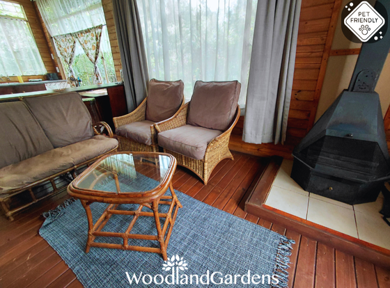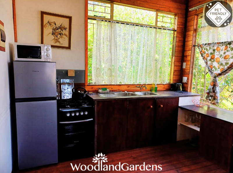 Separate bedroom (queen sized bed only) and bathroom (bath and hand-held shower). Fully equipped open plan kitchen, dining area and lounge with a fireplace, TV monitor with media ports (no DSTV) and a DVD machine. Lounge doors open onto a veranda, with tables and chairs, overlooking a privately enclosed fenced and gated garden equipped with braai and bonfire areas.